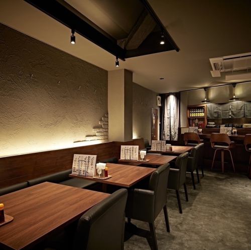 【데이트 이용이나 여자회에 추천입니다!반개실풍의 테이블석:2분×4탁/4분×1탁】흑을 기조로 한 세련된 분위기가 있어, 차분하고 요리를 즐길 수 있는 공간이 되고 있습니다.각 테이블에는 칸막이와 적당한 간격이 있어, 프라이빗감도 소중히 하고 있습니다.친구나 소중한 사람과 특별한 시간을 보내십시오.